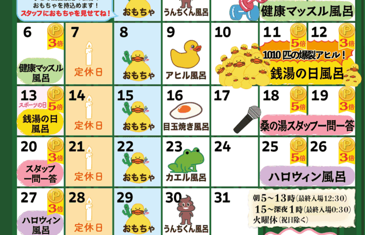 今月のイベントカレンダーを表示します!