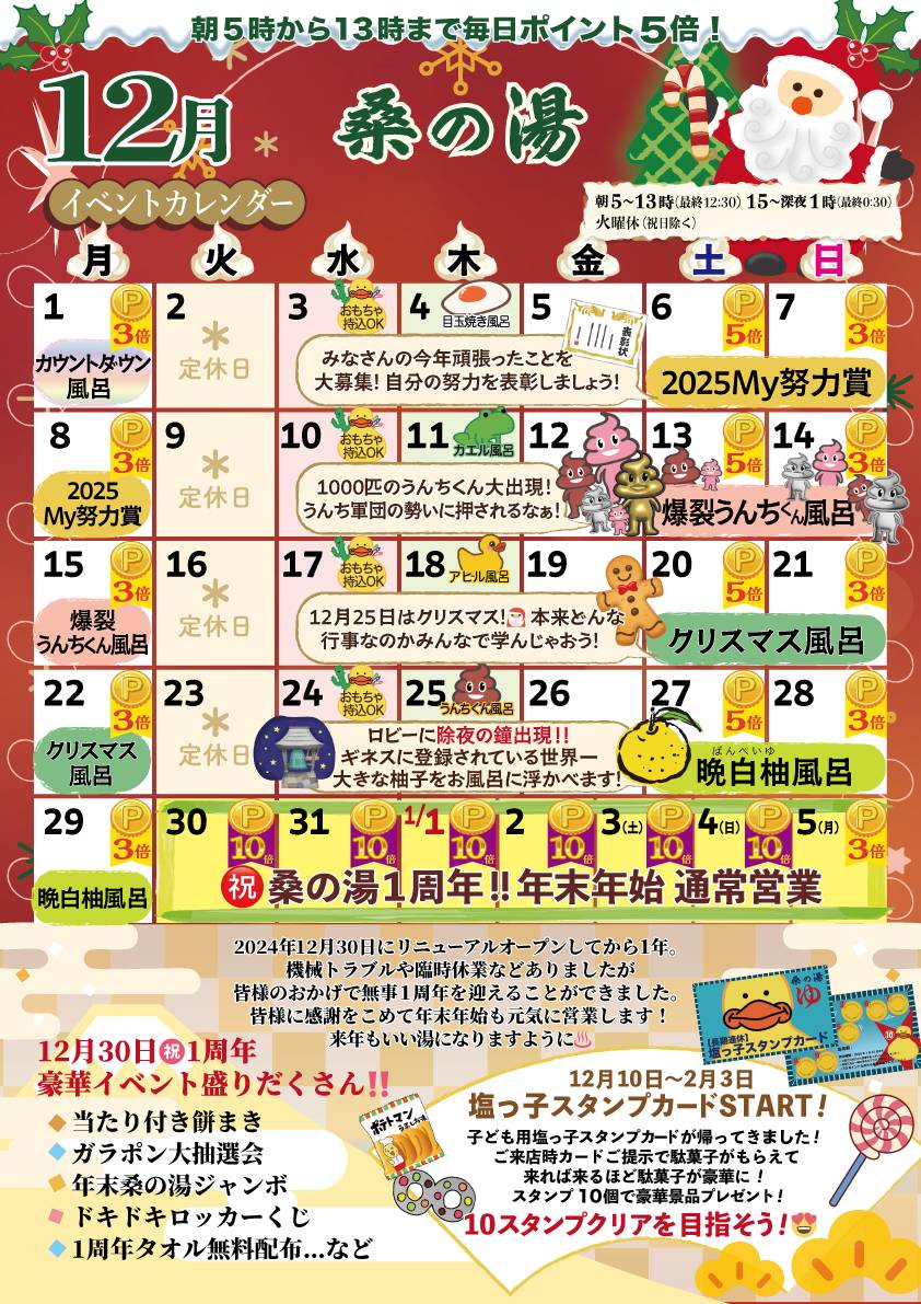 年末年始も通常営業です!イベント盛りだくさんな12月お待ちしております♨️